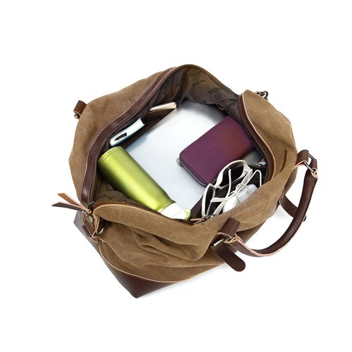 Equipped with sturdy leather top handles and a detachable, adjustable canvas shoulder strap, it can be carried as a handbag, shoulder bag, or crossbody bag—perfect for travel, gym, or commuting.