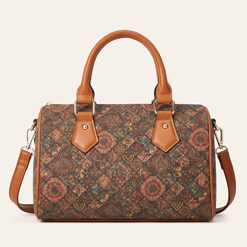 Retro Euro American Cork Pattern Women's Shoulder Bag Digital Print Multi Element Ethnic Design Hot Selling Cross Border Handbag
