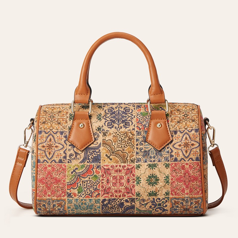 Retro Euro American Cork Pattern Women's Shoulder Bag Digital Print Multi Element Ethnic Design Hot Selling Cross Border Handbag